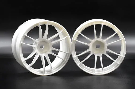 A large diameter and thin rim has applied to the inside radius of the wheel. The large diameter rims prevent unexpected contact with the ball-ends and suspension arms and the thin rim provides moderate bump deflec- tion for significantly improved traction performance.